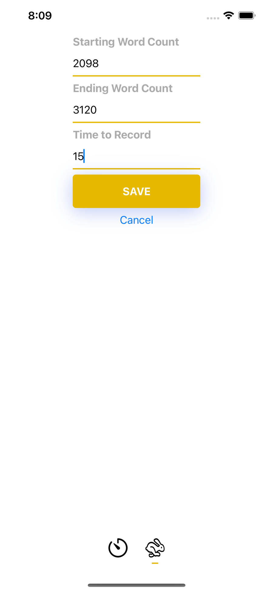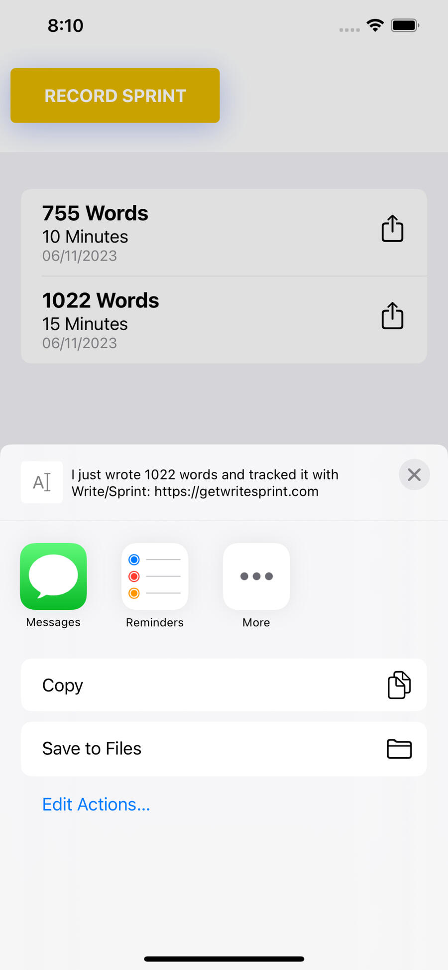 Write/Sprint will automatically calculate how many words you wrote during your writing sprint.